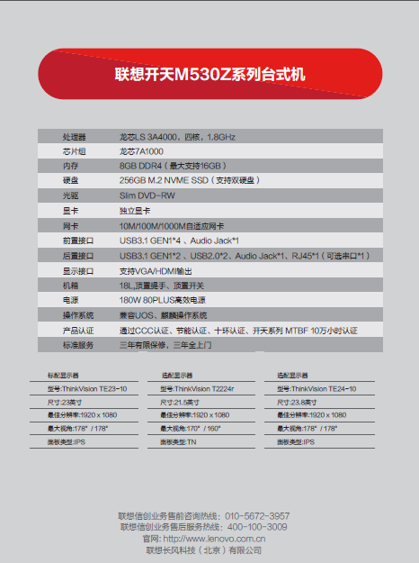 型號  :   聯(lián)想開天M530Z