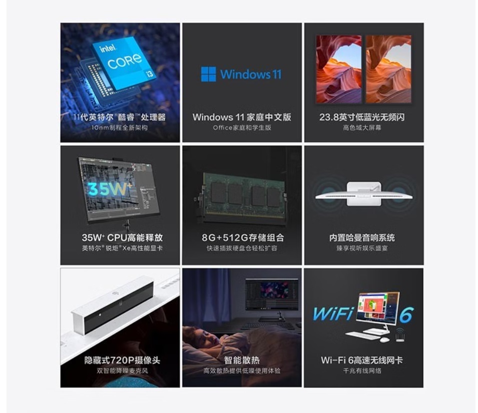 包裝清單  :   一體機(jī)電腦*1 電源線*1 無線鍵鼠*1